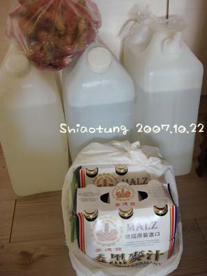 (三瓶紅標米酒蒸煮酒精後剩餘一瓶米酒水)