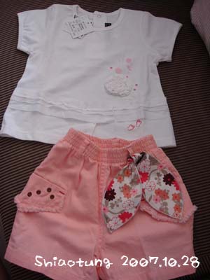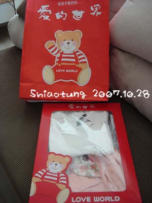 靚靚拿到的衣服有幾件已經有可以穿到四歲左右哩!