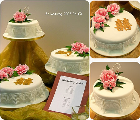 最上面是8"假蛋糕、中間是10"假蛋糕、有囍字的是12"真蛋糕