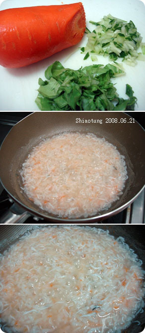 3.紅蘿蔔刨一些泥放入一起煮,增加維他命A和色彩。