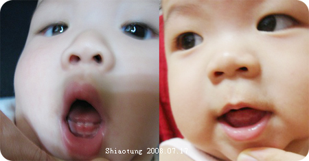 這兩個孩子常常讓我有錯覺....怎可以那麼像?除了膚色...囧爹和娘兩對都是雙眼皮...但是這兩個...都是單眼皮兒!!!靚也有吐舌,懶得找,Fu已經很像了。搞什麼鬼?那時候才要出來??老娘是拋眼皮,所以靚的感覺就有點像是內雙...可是我想要雙眼皮兒啊啊啊啊!!!