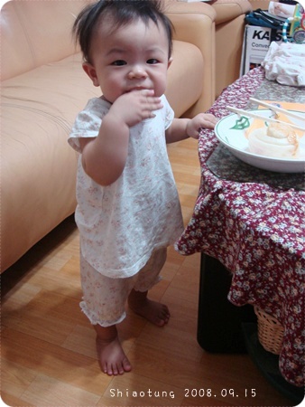 不夠高又踩到媽咪的小腿筋上來,