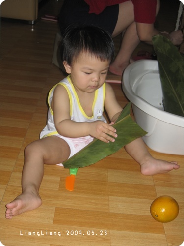 阿嬤說借了靚靚的澡盆來放大葉子很剛好,