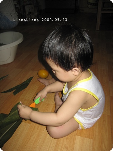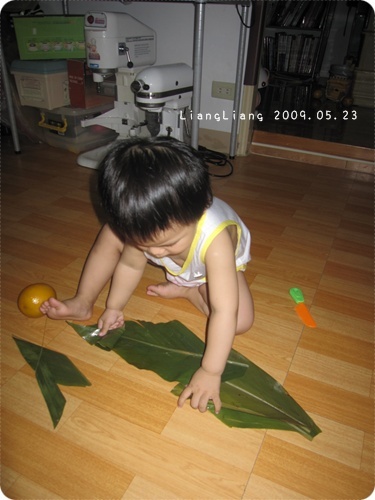 還用靚靚那把餐椅的椅子來綁粽。