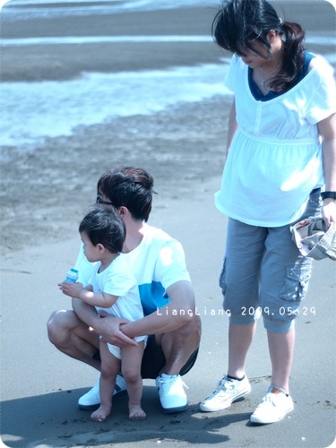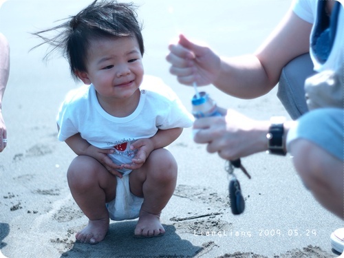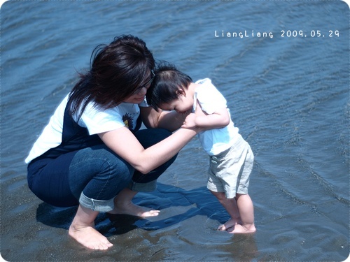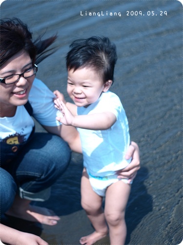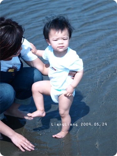 根本不敢自己踩在沙水裡,