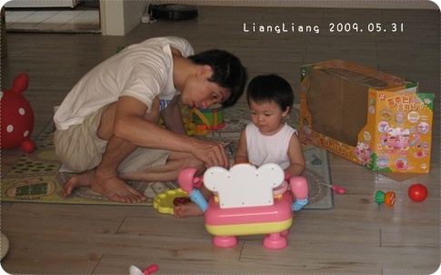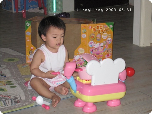 今天我們就在家裡玩玩具、辦家家酒這樣過了一天...
