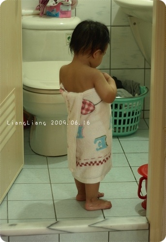 姨說:照相時照很久,又照DV,又用手機,你看她洗多久...