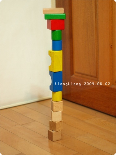 可是靓靓一歲以後就都不曾堆超過8個積木,沒耐性?