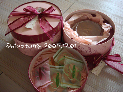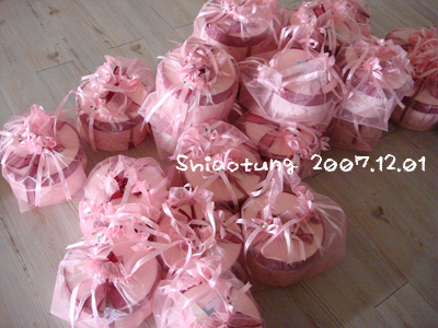 上一回很趕忙的時間的擠出70個禮盒。我跟老公還親自去幫忙包裝哩