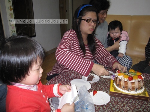 兩位小姐的臉就充滿了:Yes、Yes!!切蛋糕了。