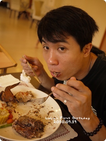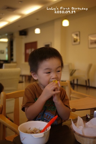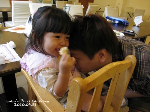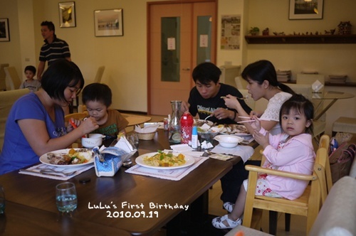 阿姨先吃飽再來幫Lu公主拍手唱生日歌喔。