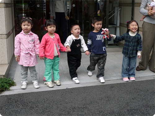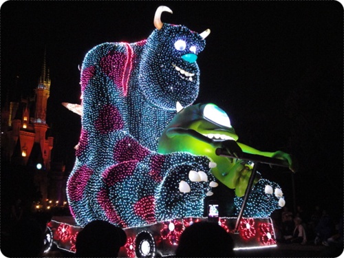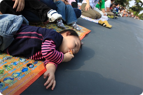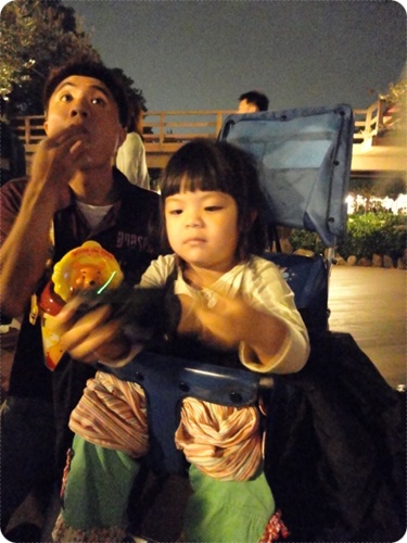 小姊弟看晚上的夢之光遊行就坐在我們前面,