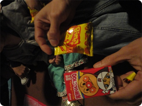 姐弟兩回敬我們一瓶麵包超人的果汁。