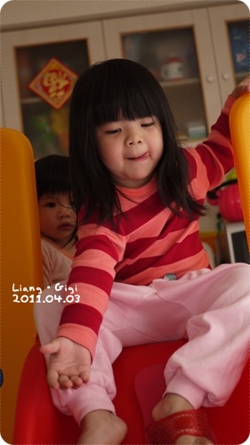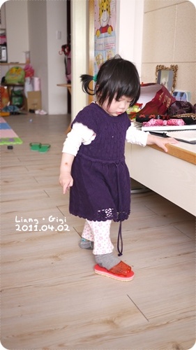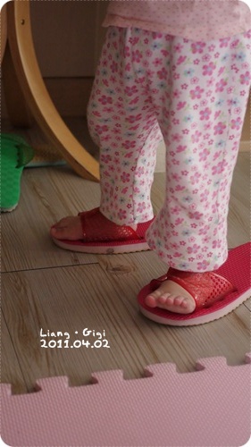 一直用腳不停的踩踩踩踩踩...竟然後來都穿好了!