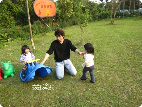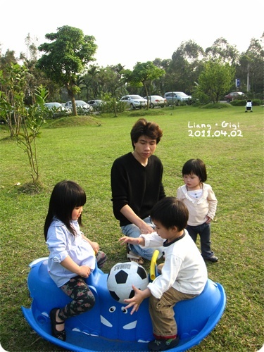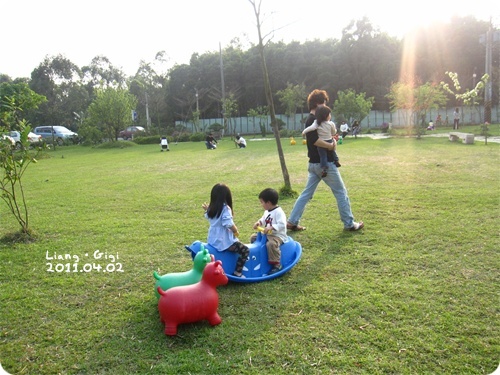 外面的大草皮還有很多批跳跳馬還有幾台小車子可以玩,