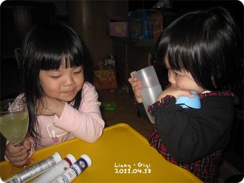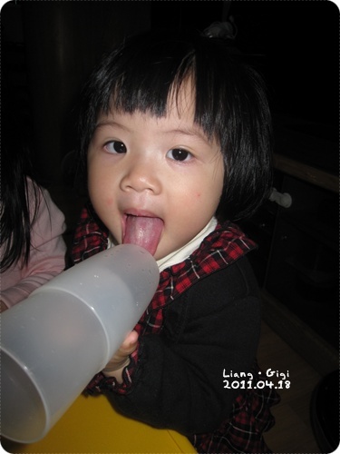 但是放到沒有氣泡以後她還是有喝!