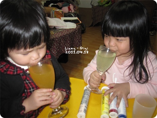 Gigi真的就是喝兩口就跟我說:我鼻要喝了、鼻要喝了...