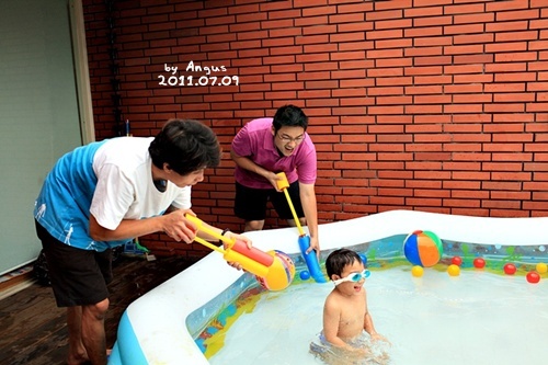 因為他們兩家子一起去羅東拿了水槍和買早餐回來!