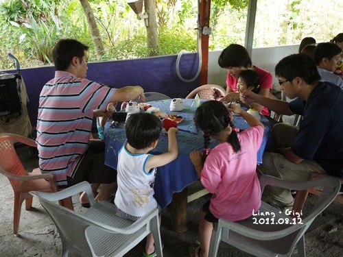 大家都很開心的準備要幫山豬著色穿衣。