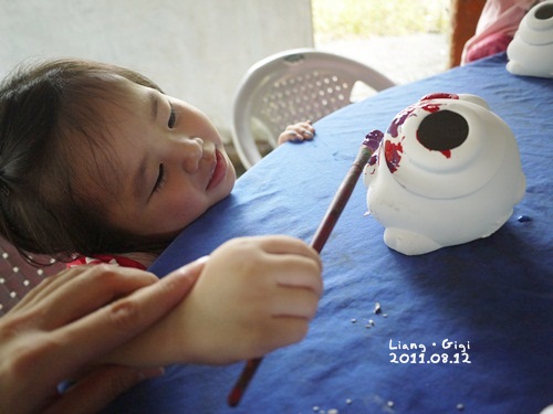 靚靚很努力的邦山豬一層一層的上色,