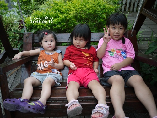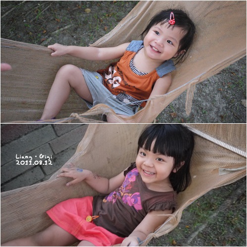 Janet讓靚靚和Gigi躺吊床,