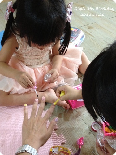 連媽媽我也要出手給她們擦假裝的指甲油。