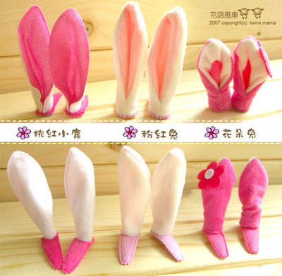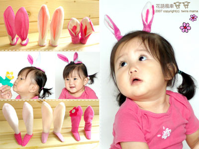 一看到這桃紅花朵兔髮夾,